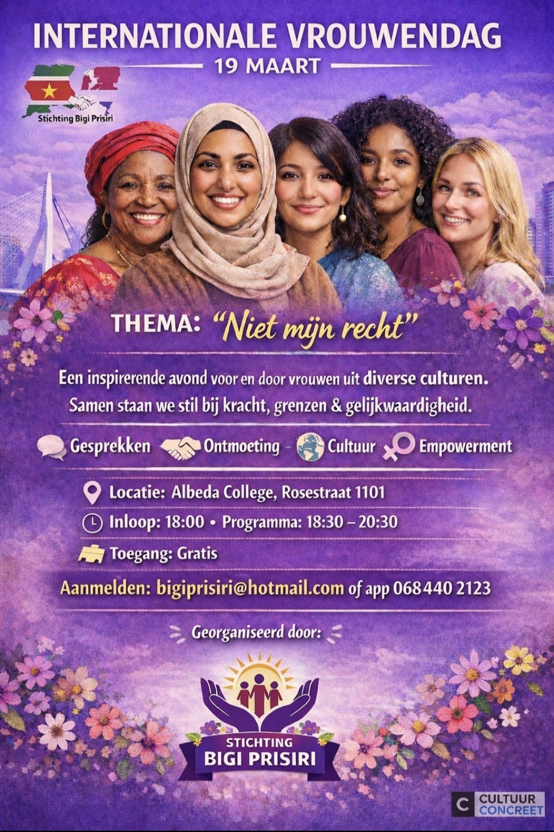 Internationale vrouwendag wordt elk jaar gevierd op 8 maart. Wij doen dat op 19 maart omdat 8 maart heel erg druk is. Op deze dag 19-3-2026 staan we stil bij de kracht, prestaties en rechten van vrouwen over de hele wereld. Het is een moment om aandacht te vragen voor gelijkheid tussen mannen en vrouwen en om vrouwen te waarderen voor hun bijdrage aan de samenleving. Internationale Vrouwendag herinnert ons eraan dat er al veel vooruitgang is geboekt, maar dat er ook nog werk te doen is voor volledige gelijkheid.